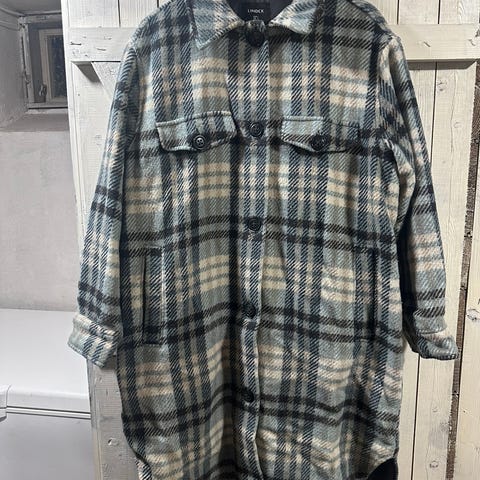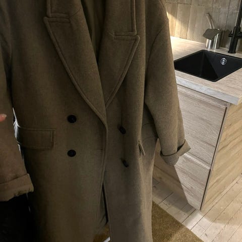 Tricot Kåpe i beige farge, laget av kasjmir. Damejakke i størrelse L. Jakken har et klassisk snitt og er laget av et ull- og kasjmirblandet materiale som gir varme og komfort.
