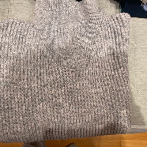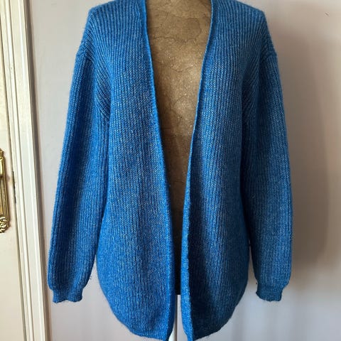 Beige cardigan i 100% merinoull frå Days Like This. Ei lita skade på eine skuldra, men ellers heil og fin.