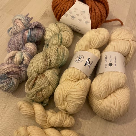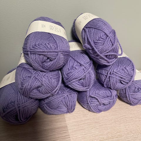 14 nøster Gann Garn Cloud i fargen Lys Blå og 10 nøster Woolevo Kid Mohair i fargen Denim. Nypris for Cloud er 1386kr og for Kid Mohair 790kr.
