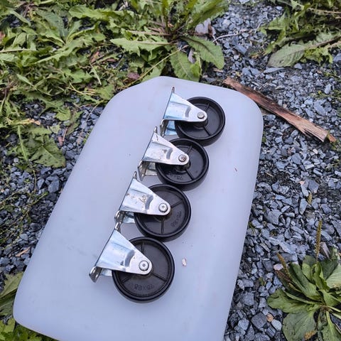 Den andre lina har 54 kroker. Ca.3,5m mellom krokene. Solid bøtte m dreneringshull.