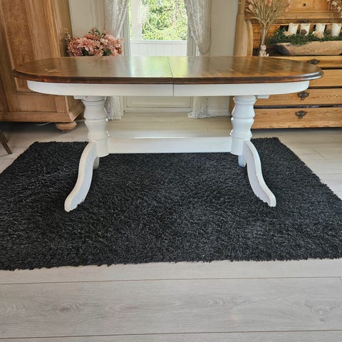 Brukt spisebord/kjøkkenbord i eik fra Skeidar (Nagano) selges grunnet plassmangel. Har et merke på bordplata etter en blomsterpotte (se bilder) Tipper det kan pusses bort.
