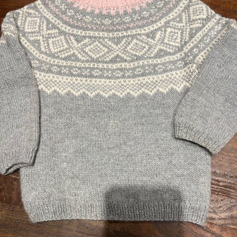 Nydeligste Mariusgenserenni lys grått, rosa og hvit. Hjemmestrikket i ull