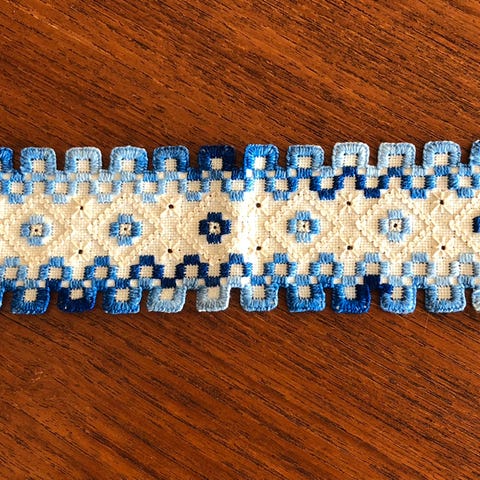Flott hardangersøm. Ble kjøpt til redesign, men aldri brukt. Håper noen andre kan få bruk for disse nydelige båndene.