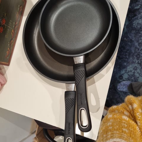 Størrelsen på fjølene gjør det lett å sette inn i oppvaskmaskin. Fjøler er brukt og har dermed en del knivmerker etter vanlig bruk