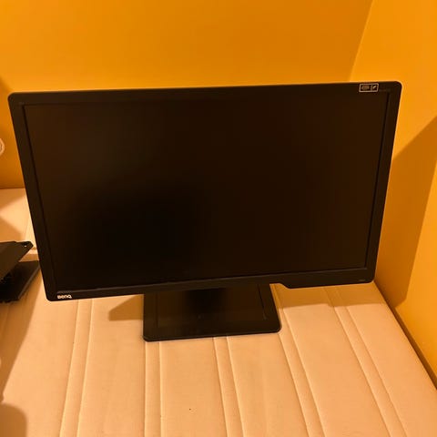 Dette er en BenQ XL2411-serien LCD-spillskjerm, som identifiseres av modell-ID-en på etiketten.
