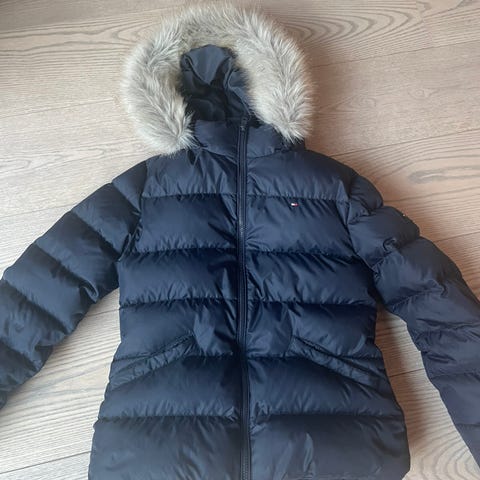 Meget pent brukt Tommy Hilfiger dunjakke, marineblå, str. 164 (13/14 år).