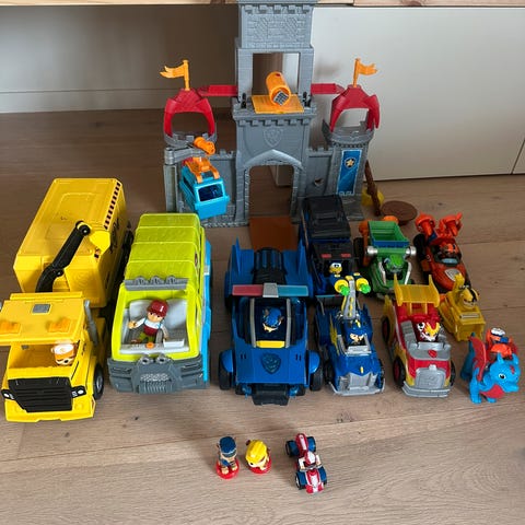 Pent brukt brannbil med Marshall figur. Delene på bilde medfølger. Har mange funksjoner. Lys og lyd fungerer.