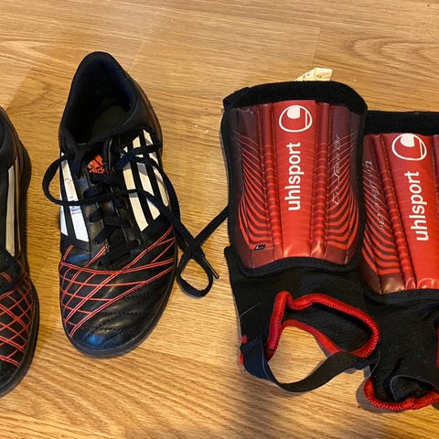 Adidas Pro leggbeskyttere i størrelse L.