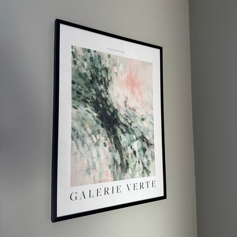 Selger lerretsbilde Le Jardin nr 1 (50x70cm) med ramme i eik for halvpris.