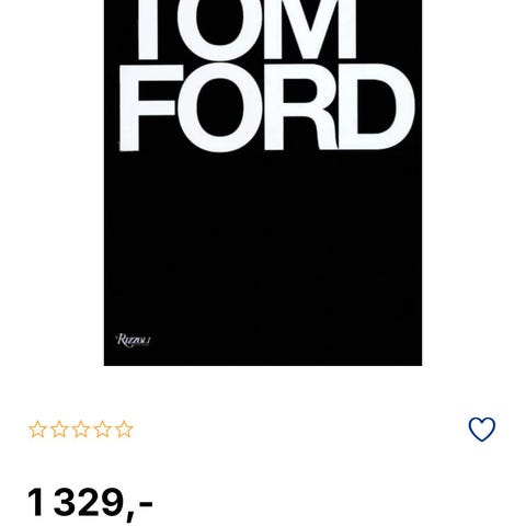 Tom Ford bok. Inneholder informasjon og bilder relatert til Tom Ford-design og kreasjoner.