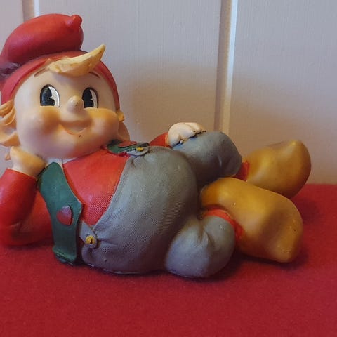 Stående nissekone m/lys , høyde 14 cm. Nissejente m/lysholder 13 cm. 5 stk kuvert nisser til lys, en nissegutt til lys. 3 stk hengenisse/kone . Selges samlet kr. 200,-
