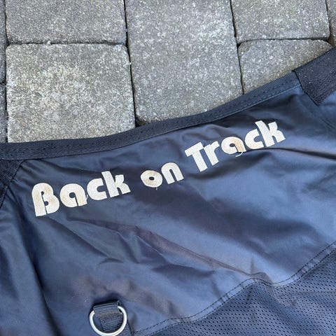 Lekkert beige/ sandfarget dekken fra Back on Track selges.