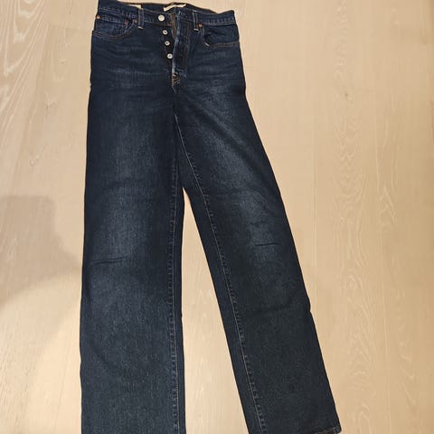 Levi's Ribcage Straight jeans i blå farge, størrelse W24/L27. Jeansene har en rett passform og knappelukking foran.