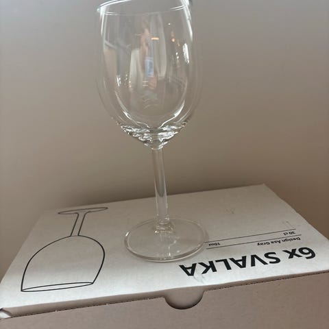 Skal du ha fest? En kasse med vinglass fra IKEA selges billig. Noen champagneglass og noen rødvinsglass. Hentes på Torshov.