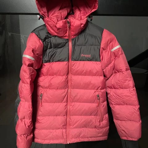 Kjempefin og lite brukt Bergans Alta dunjakke str 164. Burgund farge. Kr. 400,-.