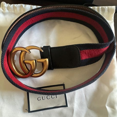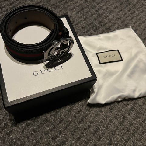 Selger dette pent brukte Gucci Belte. Størrelse 90. Kan sendes, ta kontakt ved andre spørsmål. 700++ salgsreferanser så her handler du i trygge hender