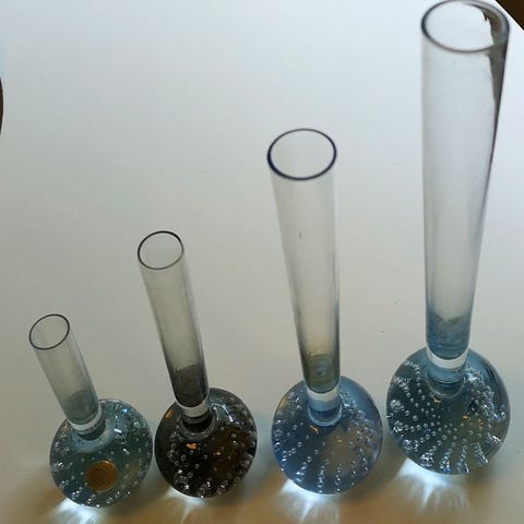Blomstervase i glass med kunstige blomster, selges!
