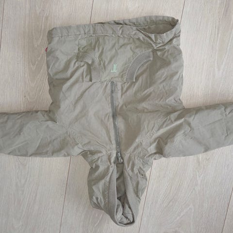 Varm og god jakke. Godt brukt men fortsatt mye bruk igjen. Noen bittesmå hull her og der, men er ubetydelige for bruken. Jakken er romslig i størrelsen.