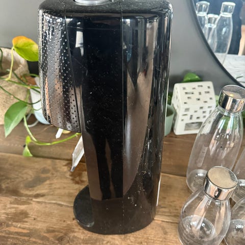 Kompakt og brukervennlig kullsyremaskin for hjemmet. Betjenes manuelt med trykknapp og krever ikke strøm. Leveres med gjenbrukbar flaske.