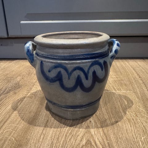 Dekorativ håndmalt keramikkmugge fra Italia. Stemplet “Capri dipinto a mano”, som betyr håndmalt på Capri.