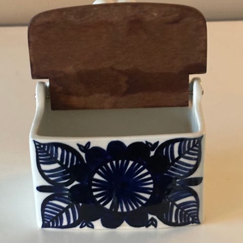 Muggen har et fargerikt og klassisk middelhavspreg med sitronmotiv og blå/grønne detaljer.