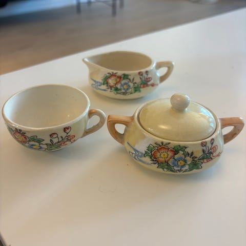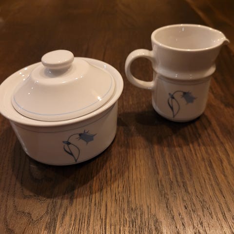 Figgjo Flint serverinsfat, soisebrikke og fløtemugge.