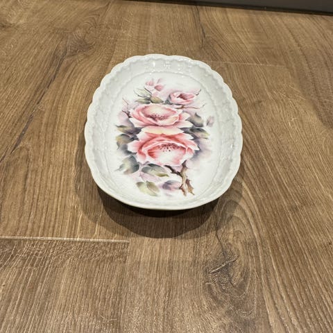 porselen, håndmalt, Selmann Weiden, Bavaria, serveringsfat, fat, blomsterdekor, vintage, retro, veggfat, kjøkkeninteriør, samlerobjekt