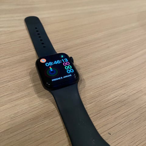Klokken er brukt og har synlige bruksspor, særlig på reim og bakside (se bilder), men fungerer fint og har vært i jevn bruk. Batteriet lades normalt.