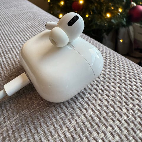Mannen min kjøpte denne for å erstatte én AirPod han hadde mistet. Selgeren oppga feilaktig at det var AirPods Pro 2, men det viste seg å være Pro 1. Selgeren nektet å ta den i retur, derfor selges den videre.
