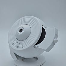 Lampen projiserer måne og stjernehimmel på vegger eller tak.