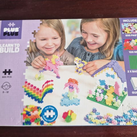 Plus Plus byggeklosser for barn i 6 pakker med assorterte farger. Klossene er små, i plast. Ca. 100 i hver pose, +-500 klosser totalt.