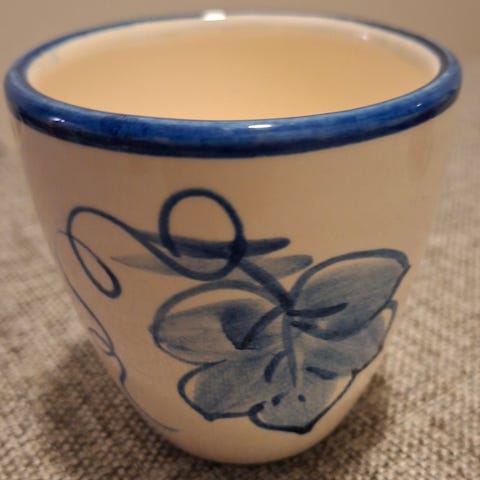 Stor størrelse med god håndtakskomfort, kapasitet ca. 35 cl (ideell for kaffe, te eller kakao), høyde ca. 11 cm. Merket Könitz Germany-2235 med fax-nummer på bunnen.