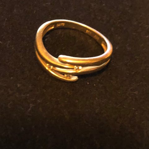 Diamantring for dame. Ringen har en enkel design med en sentralt plassert diamant. Materialet er gull,