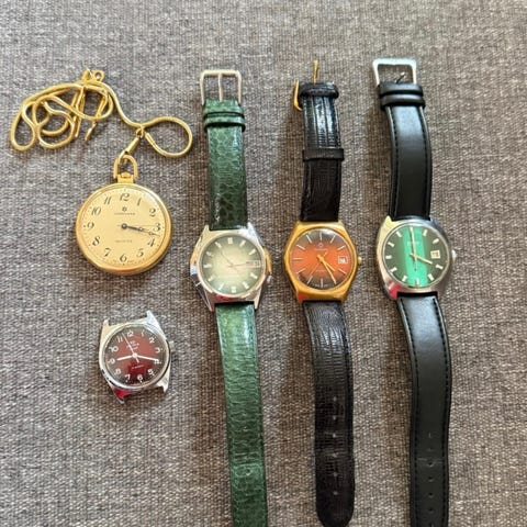- Tilstand: Klokken fungerer ikke per nå og selges som den er. Den mangler også reim, men de