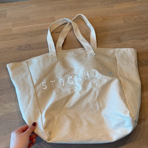 Selger en Stockholm Design Group weekendbag i vanntett, gummilignende materiale.
