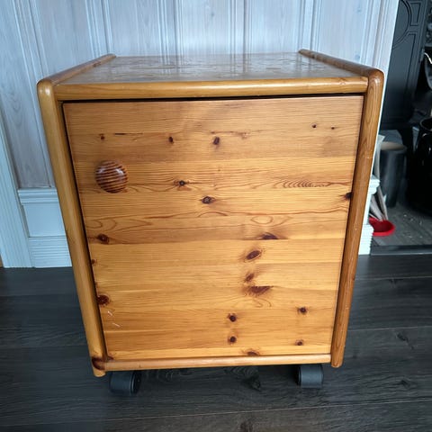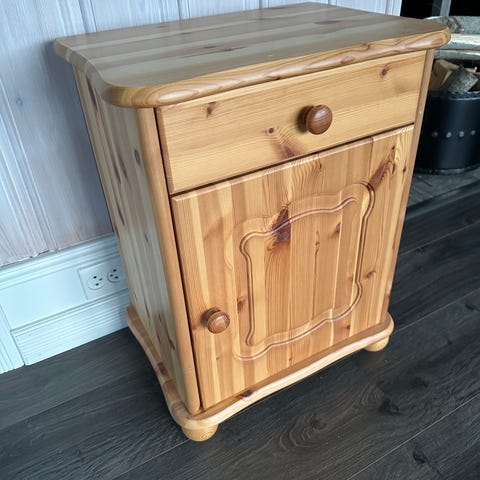 Nattbord i heltre i lakket furu. / retro/ vintage