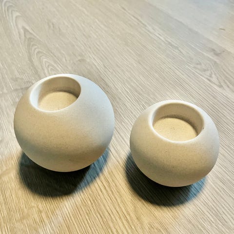 H&M Home dekorasjonslysestake i steingods med plass til to lys. Lysestaken har en buet form og et minimalistisk design som passer til ulike interiørstiler.