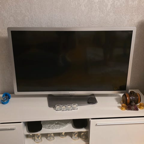 Med ambilight. Mange tilkoblingsmuligheter.
