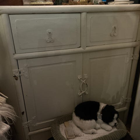 Selger skjenk. Vi har benyttet denne for oppbevaring av middagsservice.
