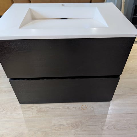 Moderne og pent baderomsmøbel selges. Kjøpt hos Megaflis i fjor og lite brukt. Selges kun fordi borettslaget skal renovere badet.