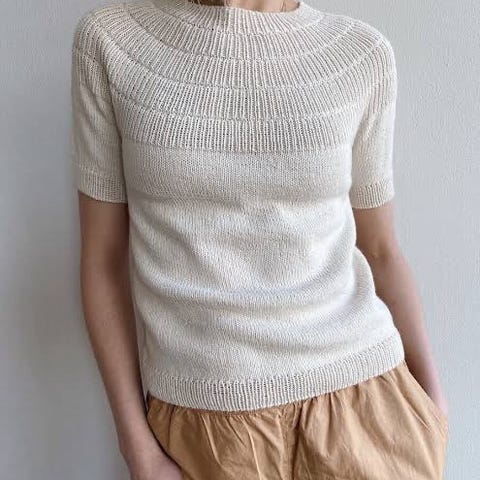 Nystrikket genser i tynn Per Gynt og silk mohair fra Sandnes Garn. Legg merke til veldig fin raglandfelling. Str er XL eller oversized M/L. Fargen er eikenøtt.