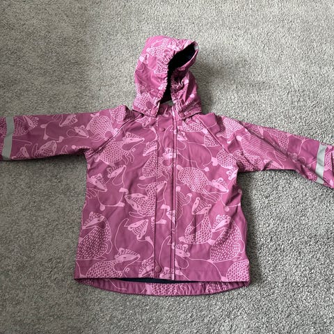 Pent brukt regndress med fôr av fleece. God på høst/vinter/vår. Selges for 100 kr