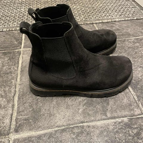 Modell Highwood er en stilren boots i middels høyde fra Birkenstock, laget av glatt skinn av høy kvalitet. Skoen har normal passform med Birkenstock sin normale bredde, og lukkes med snøring for god tilpasning. Den er fôret med skinn og har en gummisåle med korkdetaljer som gir den karakteristiske Birkenstock-følelsen. Hælhøyden er 3 cm og skafthøyden 14 cm. Fargen er Chocolate, og for vedlikehold anbefales lærbalsam. Skoene er brukt to ganger.