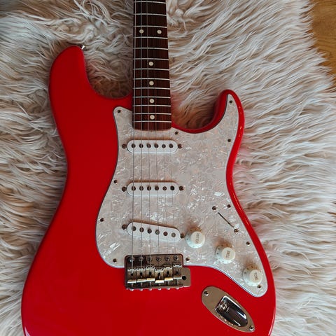 I motsetning til både American Vintage-serien før og AVII etter, har denne en mer moderne 9,5” radius fremfor vintage-korrekt 7,25”. Det gir bedre spillbarhet, spesielt ved bending. Gitaren leveres også med fabrikkmontert 5-veis switch og tonekontroll på bridge-pickup, slik nyere Strats har. Resultatet er en svært vellykket kombinasjon av vintage uttrykk og moderne funksjonalitet. Alt er originalt fra fabrikk.