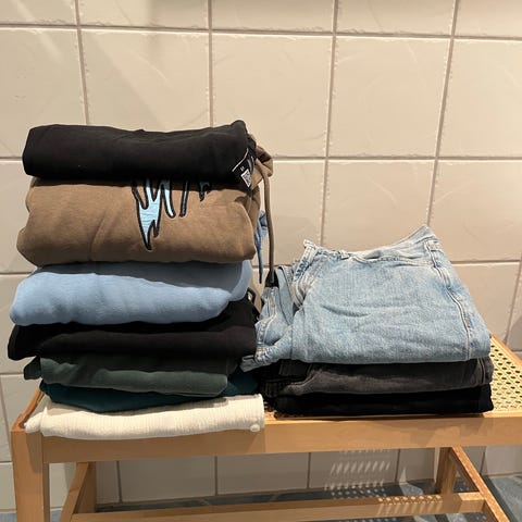 T-skjorte er brukt en del resten er ubrukt/svært lite brukt eller nytt.