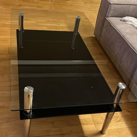 Gammel stuebord gis bort pga flytting. Pent brukt med synlig merker. Har hjul på beina.