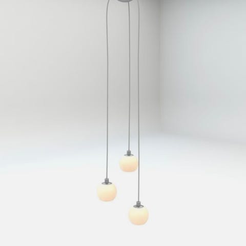 Lampen har et stilrent design med en diameter på 50 cm, og kan festes med en krok i taket. Lengden på opphenget er 120 cm, noe som gir mulighet for justering av høyden