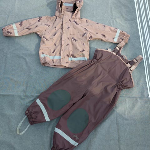 Selger et pent brukt regntøy sett til jente i str. 98.