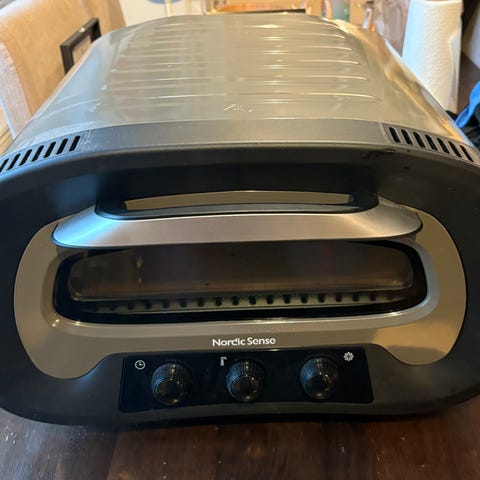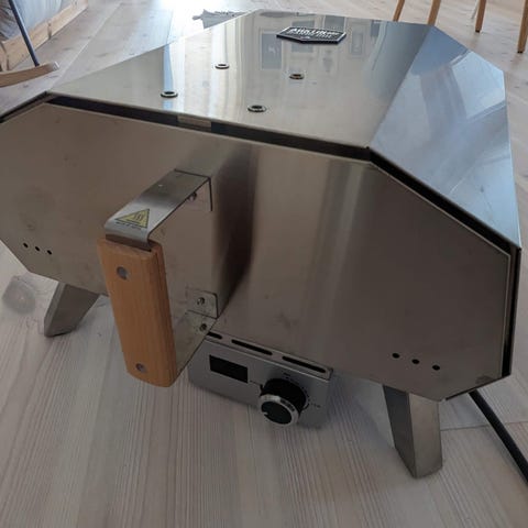 Selger en elektrisk pizzaovn, med roterende pizzastein.