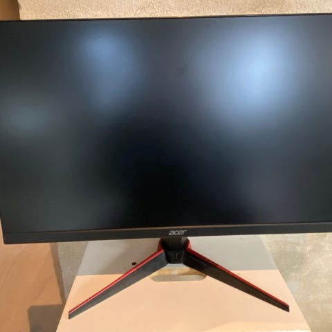 AOC 27" skjerm med svart farge. Passer til bruk som dataskjerm for ulike formål. 144 hz oppdaterings frekvens, tilgang til hdmi og display port, brukt til extra skjerm ved hoved skjerm ingen bruk for denne mer, fint brukt og aldri hatt problemer med den ganske fin når man får vrid på hele skjermen så man får mer plass,